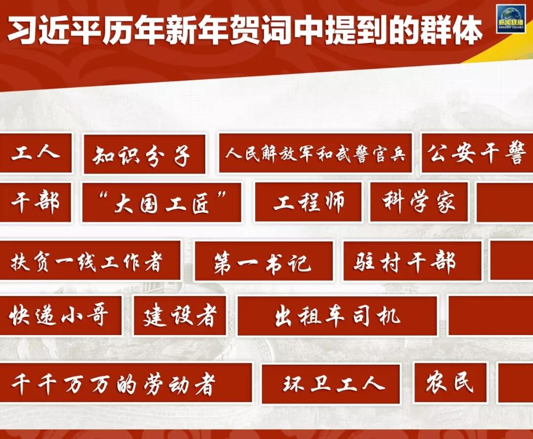 不僅是為人民點(diǎn)贊,習(xí)主席在6篇新年賀詞中也提到了一些具體的名字,并為一些群體點(diǎn)贊——